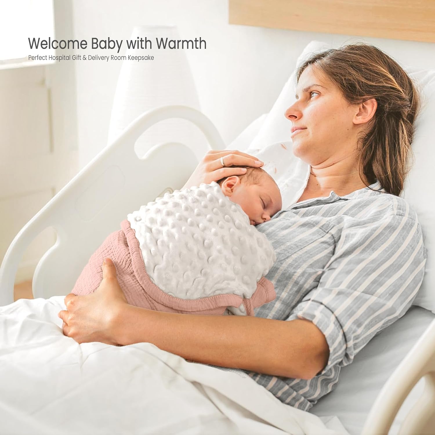 lulumoon Baby Blanket for Newborn Receiving: Minky Dot & Muslin Lightweight - Thermal Blanket Gift for Baby Shower & Hospital Welcoming 30"x40"(Pink)