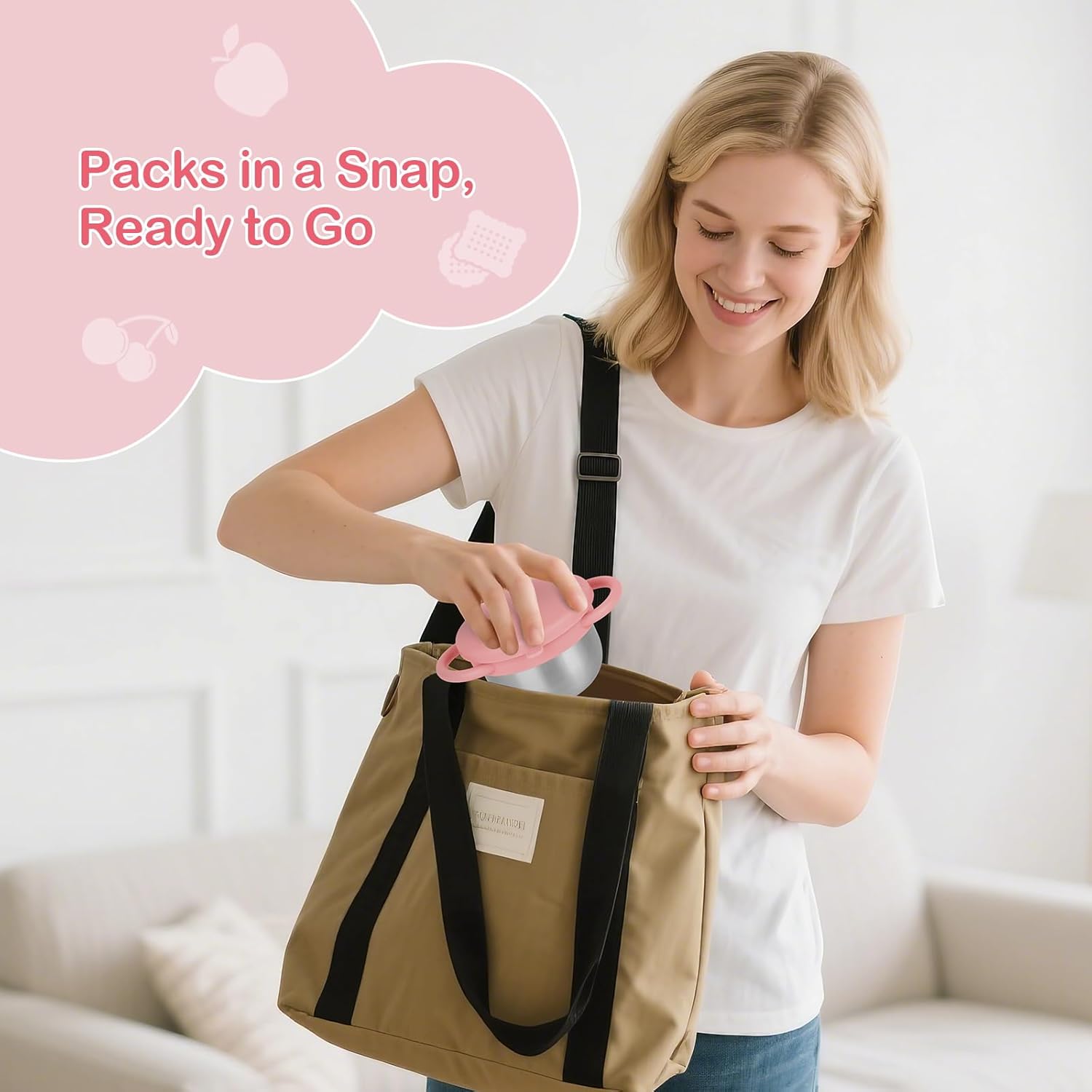 - Dual Easy-Grip Handles: Our snack cup features two soft, ergonomic handles that are lightweight and compact, allowing little hands to grip them securely and comfortably. Whether at home, in the car, or during your baby's adventures exploring the world, the easy-grip design helps develop hand-eye coordination, reduces slipping, and gradually fosters the good habit of independent eating.