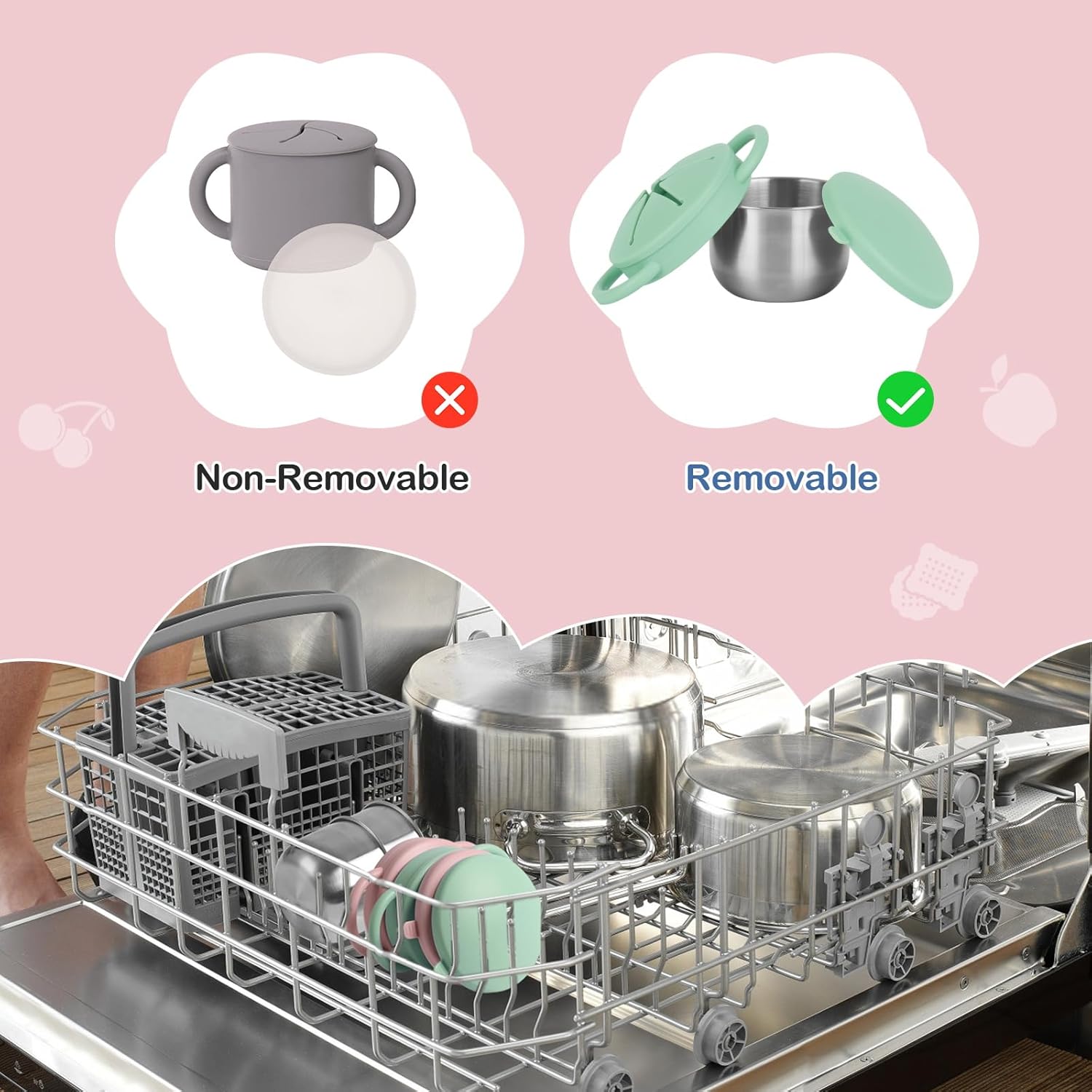 - Easy to Clean: Say goodbye to sticky residue and odors! Our baby snack cups feature a unique 3-in-1 detachable design that can be opened with a simple twist, making deep cleaning easy and simple. It is stain-resistant and dishwasher-safe, or can be quickly wiped clean. This makes cleaning a breeze for busy parents, allowing children to be ready to enjoy any snack time adventure.