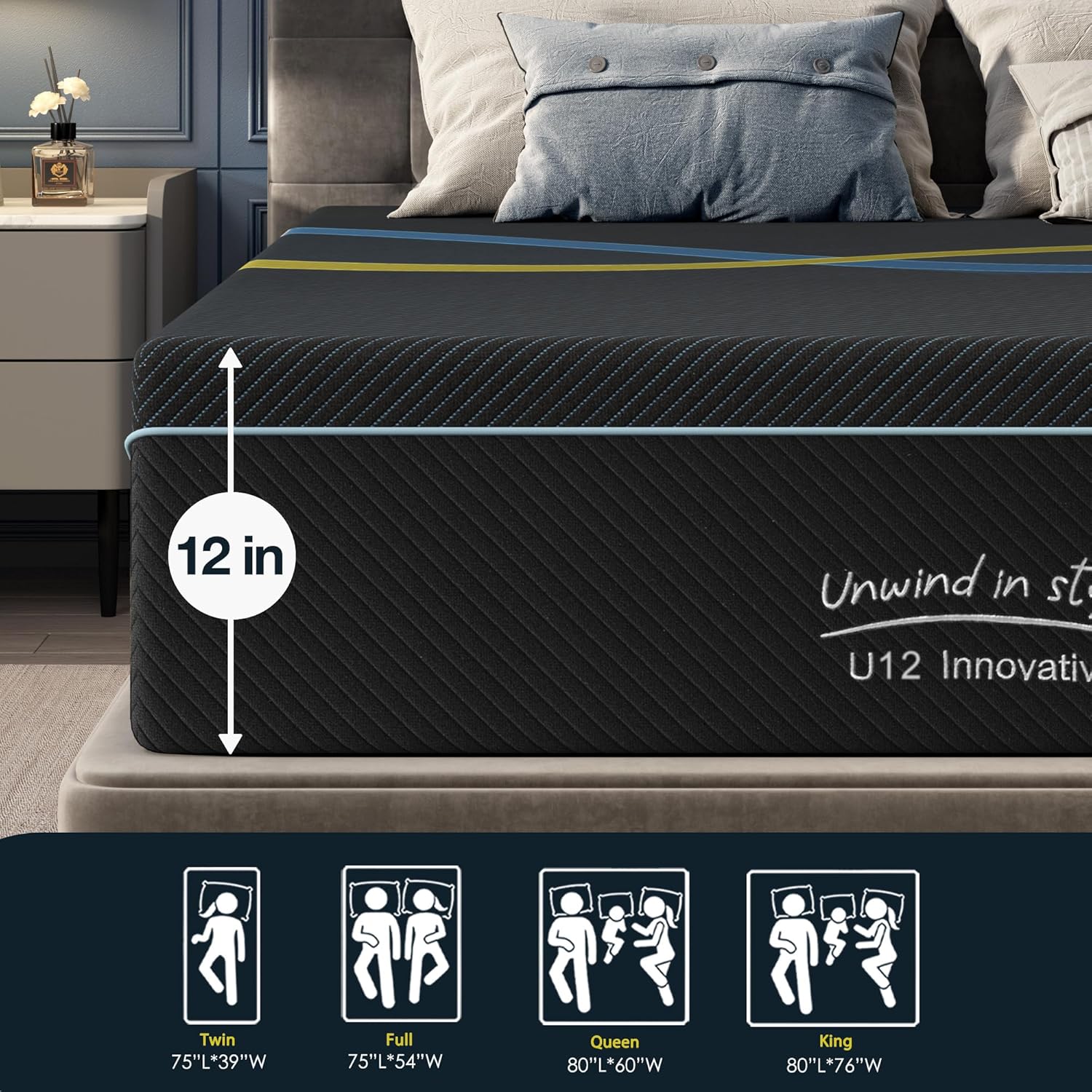 12 inch Full Mattress Multi-Layer Memory Foam Mattress - Medium Firmness with Bamboo Charcoal & Green Tea Infusion
